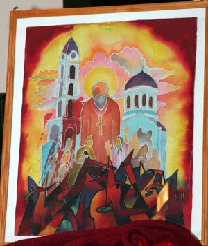 Гран-при ? икону священномученика Константина и альбом по истории иконописи ? получил Алексей Иванов, девятиклассник Богородской гимназии, за живописное панно ?Константин Богородский?. У этой работы своя история, которая началась 20 ноября ? в день обретения мощей сщмч. Константина Богородского. Завершая картину, Алеша пролил на нее красную краску ? как ему показалось в тот момент, безнадежно испортил практически готовую работу. Ночью, со слезами на глазах, он сидел над копией. Копия, конечно, оказалась не так хороша, как оригинал, но была чистой, без пятен и помарок. А наутро, когда учительница решила все же взглянуть на ?испорченную? картину и развернула ее ? все ахнули: капли алой краски на изображении собора и одежде окружающих святого людей, похожие на пятна крови, придали изображению подлинный драматизм и глубину? Словно Сам Господь помог мальчику передать смысл и значение происшедшей в Богородске в 1918 году трагедии.