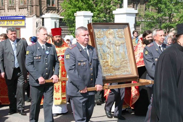 За праздничной Литургией в соборе молились заместитель начальника Управления ГИБДД Московской области В.Мишин, глава Ногинского района В.Лаптев, командир Пятого батальона ДПС ГИБДД В.Пылаев, представители руководящего состава дорожно-патрульной службы области. Во время Крестного хода именно офицерам милиции было доверено нести икону святителя Николая и хоругви. Богослужение прошло очень торжественно и благолепно, при большом стечении народа.