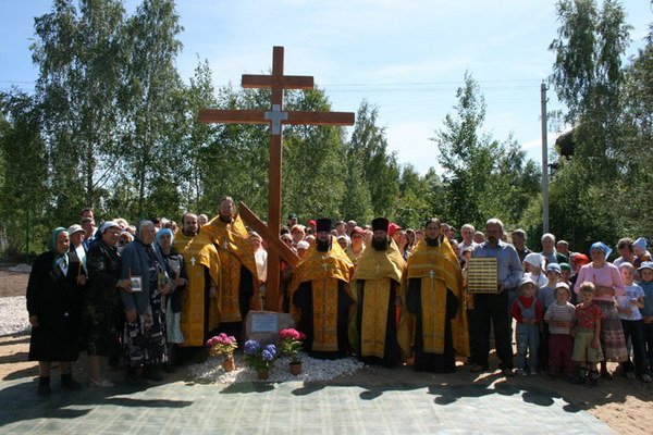 12 июня духовенством Орехово-Зуевского благочиния был освящен и установлен памятный крест в поселке садового товарищества «Оптимист». Приезжая на выходные люди не имели возможности посещать храм. Инициативная группа просила благочинного Орехово-Зуевского округа протоиерея Андрея Коробкова ходатайствовать перед Владыкой Ювеналием о постройке небольшого деревянного храма в честь Всех святых, в земле Российской просиявших. Стараниями жителей товарищества был приобретен земельный участок под строительство храма, оформлена документация.