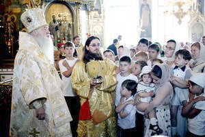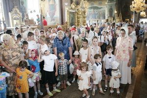 День начался архиерейским богослужением. Все маленькие жители Лагеря во главе с воспитателями собрались в Богородицеродественском соборе города Орехово-Зуева. Ребята готовились причащаться.