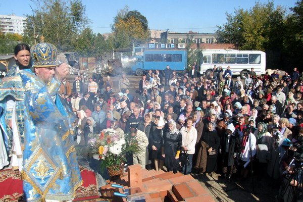 На месте строительства, где уже «вырос» цокольный этаж, Высокопреосвященнейший Григорий совершил чин закладки храма. После этого торжественного акта Владыка архиепископ обратился к верующим с обращением митрополита Крутицкого и Коломенского Ювеналия по случаю