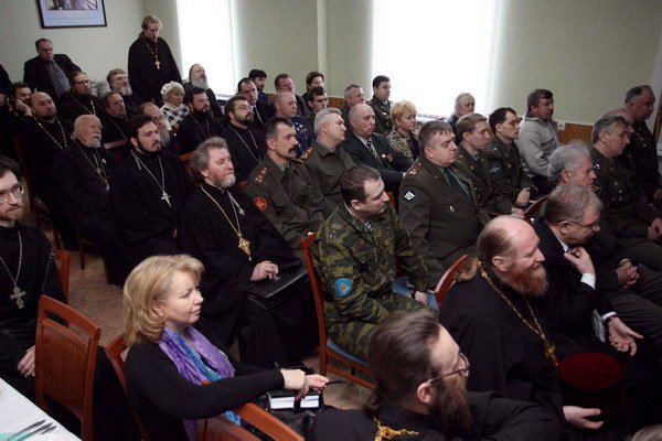 Иерей Димитрий Измайлов, ответственный за работу с Вооруженными силами в Коломенском благочинии, рассказал о конкретных методах работы с военнослужащими и сделал упор на проведение регулярных, а не разовых мероприятий. Протоиерей Алексий Новичков поделился опытом работы с подростками в подготовке их к будущей воинской службе и проведении летних лагерей военно-патриотической направленности. Далее слово было предоставлено полковнику запаса ВВС В.М. Курылеву, который рассказал о патриотическом и духовно-нравственном воспитании воинов.