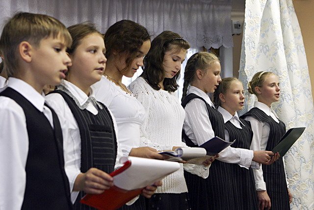 В актовом зале Владыку Григория и почетных гостей встречали гимназисты. Старшеклассники подготовили