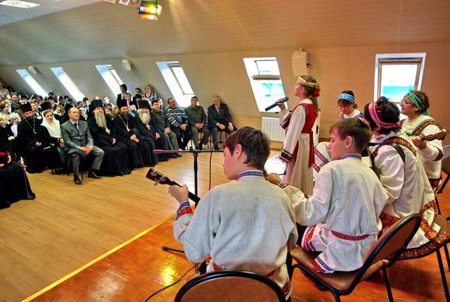 Затем в новом учебном корпусе православной гимназии, выстроенном в ограде Богоявленского собора, состоялся праздничный концерт детских коллективов благочиния. Выступил хор Покровского храма села Кудиново «Православный родничок», детский хор Троицкого храма г. Старая Купавна, ученица православной гимназии им. прп. Андрея Рублева Мариам Скаржевская, и, конечно, богородские православные гимназисты — Кирилл Гридасов, Женя Бабышева и другие. Концерт прошел словно на одном дыхании. Особенно порадовало зрителей выступление ансамбля народных инструментов «Красно солнышко» православной гимназии и воскресной школы Богоявленского собора (солистка — Маша Бакум). Зажигательные и веселые народные песни в исполнении ребят, одетых в яркие национальные костюмы, не оставило равнодушным никого.