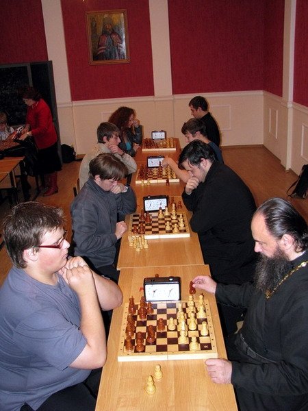 Игры проходили в формате быстрых шахмат: партия длится не более получаса. Каждая команда состояла из четырех человек, и представители колледжа, обычные студенты, выглядели существенно лучше представителей собора, показывая хорошую, уверенную игру.