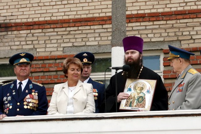 По поручению благочинного церквей Богородского церковного округа протоиерея Михаила Ялова, клирик Богоявленского собора протоиерей Константин Циона поздравил собравшихся и передал в дар части икону святителя Николая Чудотворца.
