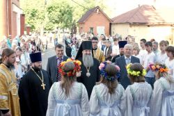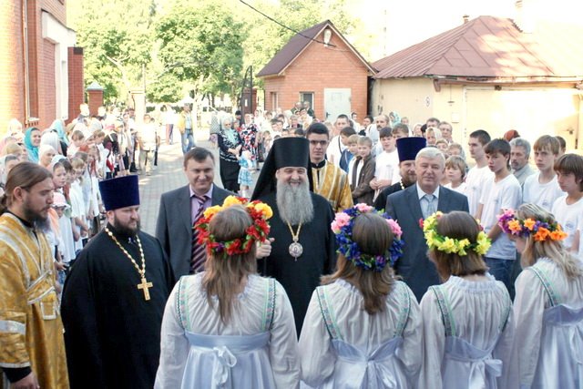 По завершении богослужения Владыка Роман обратился с приветственной речью и передал в дар главам города и района, а также О. Н. Долженко двухтомные издания «Монастыри и храмы Московской епархии». Затем присутствовавших тепло поприветствовал глава Орехово-Зуевского района А. П. Филиппов.