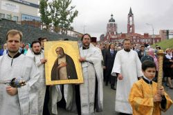 Праздник городского поселения Щелкова 29 августа начался торжественной службой в соборе Святой Троицы и крестным ходом к новопостроенной церкви преподобного Серафима Саровского на набережной реки Клязьмы. Часовня, находившаяся здесь ранее, была разрушена в богоборческие времена, одна из икон — образ батюшки Серафима сохранен благочестивыми прихожанами, и когда Троицкий собор стал восстанавливаться, икона была передана Церкви. Теперь этот образ с частичкой мощей преподобного после недельной сугубой молитвы в соборе был перенесен к месту его исторического пребывания. Сотни щелковчан приняли участие в молитве и крестном ходе. Под колокольный звон с торжественным пением шли верующие по улице, и к ним присоединялось все больше и больше горожан.
