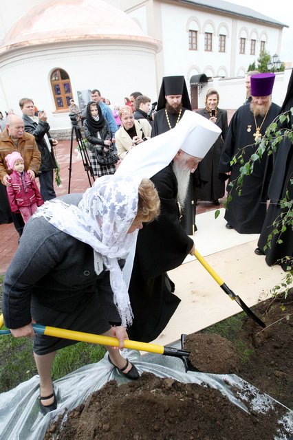 По окончании богослужения Владыка Ювеналий ознакомился с выставкой фотографий, рассказывающей о жизни Щелковского благочиния — это многогранная работа с образовательными учреждениями, воинскими частями района, молодежными центрами и медицинскими учреждениями. Фотовыставка отразила и возрождение церковной жизни на Щелковской земле: закладку новых храмов, завершение реставрации и роспись старых. В этот день фотолетопись Троицкого собора пополнилась ещё одним снимком, запечатлевшим знаменательное событие — посадку Владыкой молодого каштана у приходского дома и Православной гимназии «Ковчег».