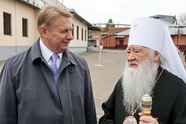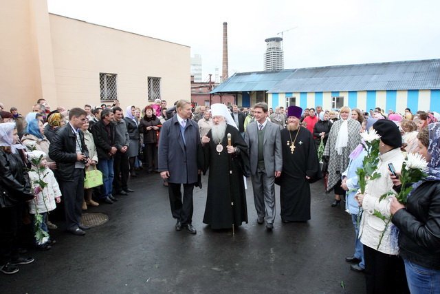 Далее митрополит Ювеналий с высокими гостями направился на хлебозавод, где осмотрел территорию храмового комплекса: рядом с каменным храмом в честь иконы Божией Матери «Спорительница хлебов» построен новый просфорный цех. Это единственное в России технологически оборудованное предприятие, выпекающее хлеба, просфоры, артосы для православных храмов. Церковь комплекса построена по современному проекту архитектора Александры Павловны Петренко и имеет благолепное белоснежное внешнее убранство: его венчают три купола и замечательные по красоте и мощи звона колокола. Можно сказать, что в постройке церкви активное участие принимал весь дружный коллектив предприятия. И хотя расположена она на территории завода, её смогут посещать и горожане. Впереди завершение внутренних работ, установка иконостаса, роспись церкви — и самое важное событие для каждого прихода — великое освящение.