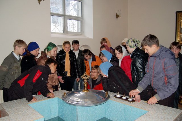27 октября приходом храма прп. Сергия Радонежского села Новосергиево была организована поездка воспитанников старших классов коррекционной школы интерната № 7 г. Ногинска в храм. Ребят и воспитателей встретил настоятель церкви священник Виталий Бабушин, который рассказал об истории храма, о ходе реставрационных работ и современной жизни прихода. В ходе беседы ребята познакомились с главными святынями храма: иконой преподобного Сергия, содержащей частицу его святых мощей, а также фотогалереей новомучеников и исповедников Московской епархии. После общения в храме встреча продолжилась чаепитием, во время которого отец Виталии ответил на многочисленные вопросы.