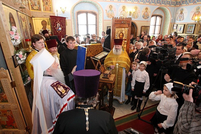 «После первой службы у нас Владыки Ювеналия в сентябре 1990 года пошло восстановление. В первое время я служил в алтаре, а по нему словно на танке проехали, настолько он был разрушен. И вот сейчас мы с вами присутствуем в этом благолепном храме. Даже удивительно, что стало возможным восстановить его из таких руин. Это произошло благодаря усилиям людей, многие из которых уже почили. На первом молебне были только четыре бабушки. Трех из них уже нет в живых. Одна находится сейчас в очень преклонном возрасте и в немощи — она сподобилась иноческого пострига — это инокиня Анна (Махова).