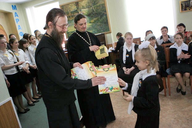 Программа марафона предполагала посещение учащимися станций с тематическими названиями «Иконная», «Библейская», «Жития святых», «Христианская нравственность» и другие, на которых священники Троицкого собора, совершив опрос, ставили оценки по