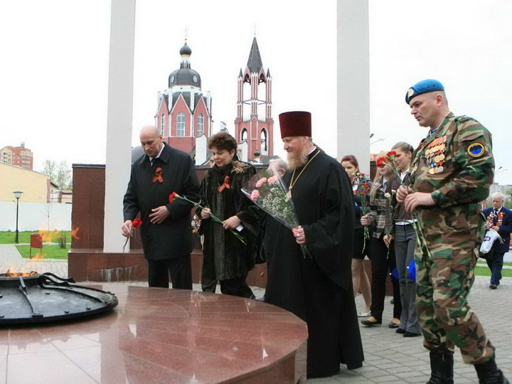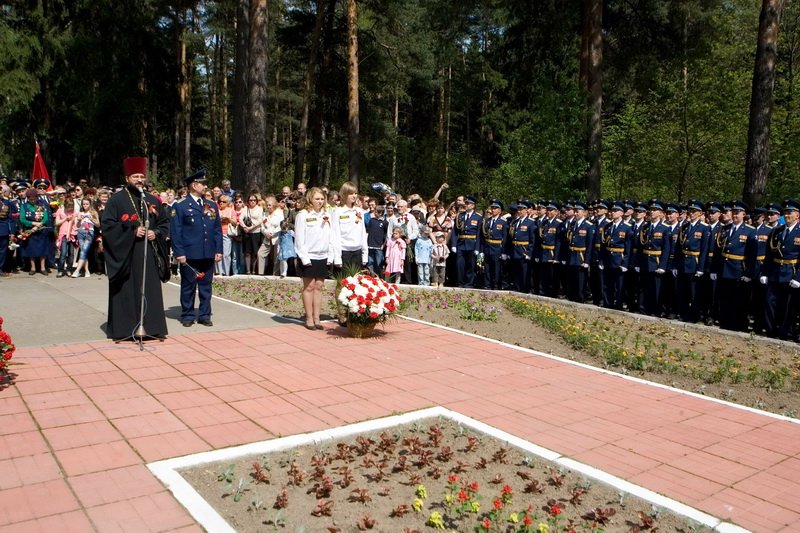 В военном гарнизоне поселка Монино у памятника Скорбящей матери прошел торжественный митинг, участниками которого стали ветераны Великой Отечественной войны, Вооруженных сил, личный состав полка Парадного расчета, преподаватели и слушатели Военно-воздушной академии, члены семей военнослужащих. С приветственным словом к собравшимся обратился настоятель храма вмч. Георгия Победоносца иерей Александр Буков.