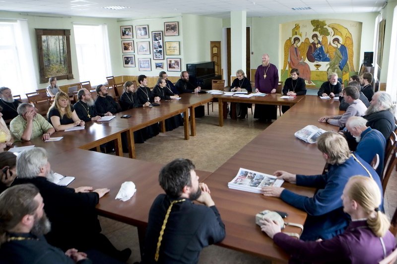 Завершилось собрание пастырским семинаром на тему «Таинство Крещения и практика огласительных бесед». После доклада настоятеля Казанского храма села Богослово протоиерея Антония Коваленко священники и катехизаторы поделились опытом проведения огласительных бесед. Задавалось много вопросов, на которые докладчиком и другими опытными священниками давались практические советы.