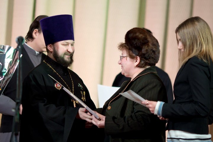 В завершение праздника к присутствующим педагогам обратился благочинный Орехово-Зуевского округа протоиерей Андрей Коробков. После своего слова отец Андрей вручил благословенные митрополичьи грамоты начальнику управления образования Орехово-Зуевского района А. Н. Цветкову и его заместителю В. Н. Смирновой.