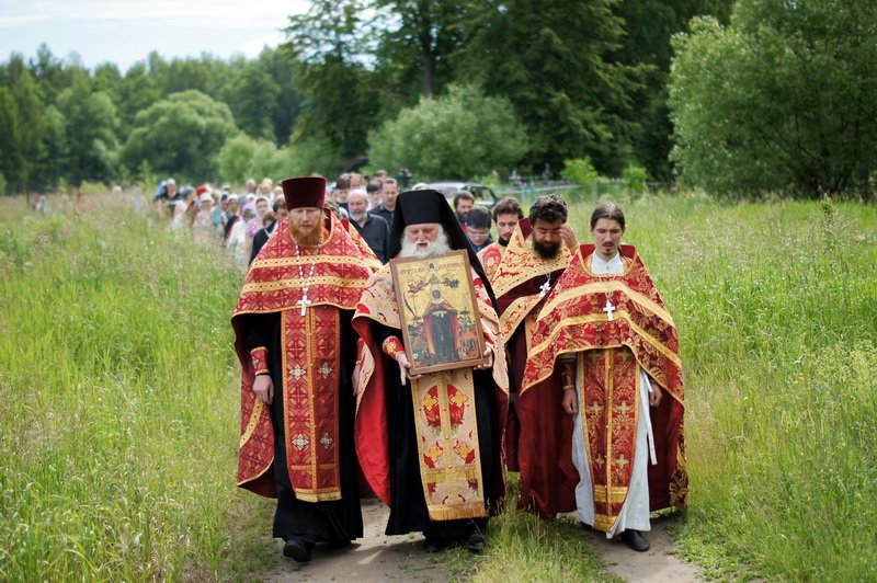 По заамвонной молитве отец благочинный поздравил настоятеля и прихожан с торжеством и преподнес в дар храму отреставрированный образ вмц. Параскевы, который некогда, до закрытия и разорения Никольского храма дервни Большая Дубна хранился в этой церкви. Далее состоялся сам крестный ход к расположенному недалеко от храма водному источнику великомученицы Параскевы, где после молебна желающие могли набрать воды и искупаться в купели.