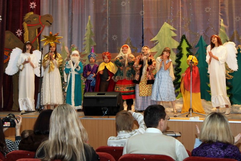 Представление открыл рождественский спектакль «Свет пришел в мир». Спектакль сопровождался живой музыкой в исполнении профессионального скрипача. Затем прозвучала