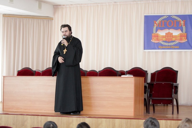 30 марта в рамках соглашения о сотрудничестве между Орехово-Зуевским благочинием и Московским государственным областным гуманитарным институтом г. Орехово-Зуево священник Антоний Рыжаков, настоятель Покровского храма села Старый Покров, прочел студентам лекцию о духовном краеведении Подмосковья, рассказав об истории тех храмов, которые располагаются в благочинии.