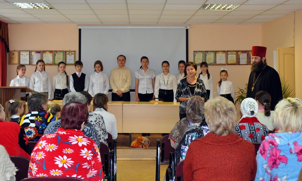 Дети поздравили больных небольшим концертом, состоящим из пасхальных стихов и песнопений. Были исполнены песнопение «Христос Воскресе!» придворного напева, Пасхальный кант и песня «Арфы золотые». Отец Александр поздравил болящих с великим светлым праздником Пасхи Христовой и пожелал всем скорейшего выздоровления.