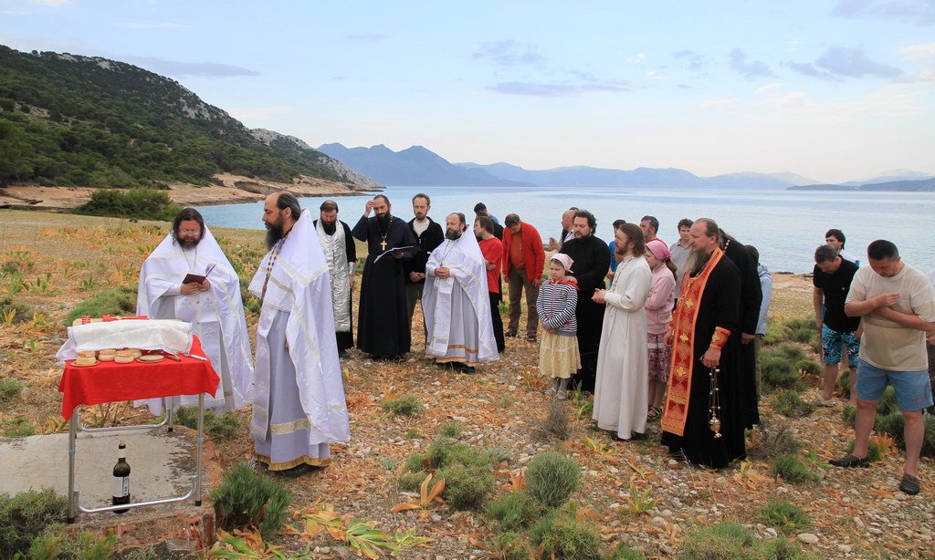 Были совершены две Божественные литургии: в воскресенье, 13 мая, на острове Мони (на походном антиминсе), и в день перенесения мощей святителя Николая Чудотворца, 22 мая, на острове Даскалия, что в бухте Русская, где располагался штаб эскадры Российского флота под командованием святого праведного воина Феодора Ушакова — в храме Успения Божией Матери, на антиминсе, выданном паломникам для совершения этой службы митрополитом Идрским, Спетским и Эгинским Ефремом.