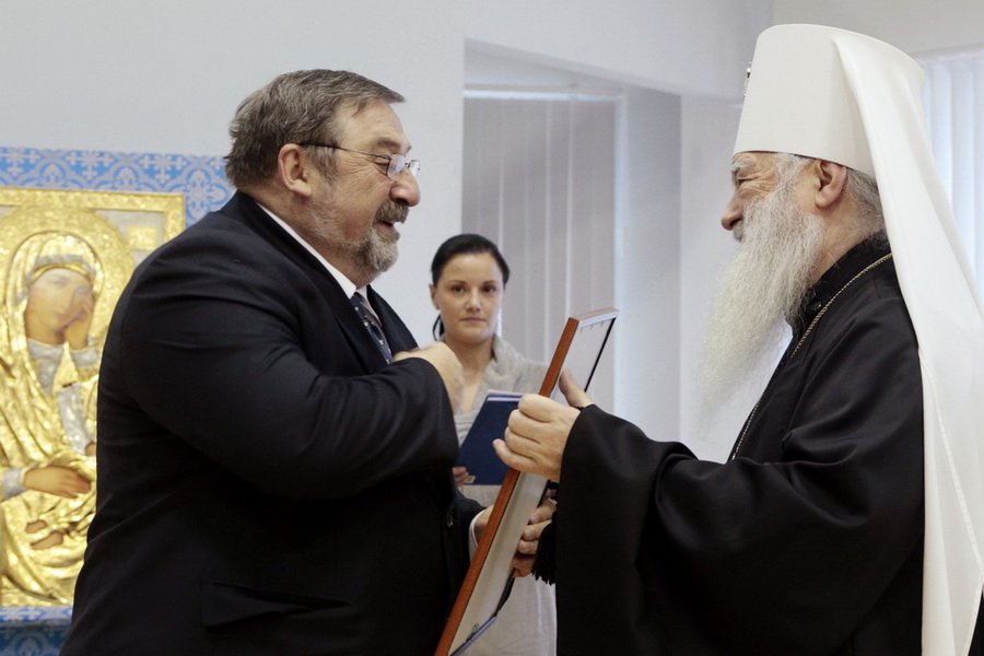 В завершение выступления Владыка митрополит в благословение за усердные труды вручил грамоту коллективу Российской международной академии туризма и ее первому проректору, профессору