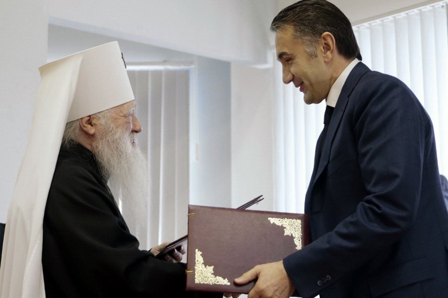 Для торжественного переподписания соглашения Управляющий Московской епархии митрополит Крутицкий и Коломенский Ювеналий и министр физической культуры, спорта, туризма и работы с молодежью