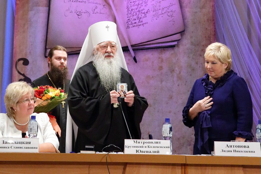 От имени всех собравшихся митрополит Ювеналий поздравил Лидию Николаевну с назначением на новую высокую должность и вручил ей в благословение образ святителя Николая Чудотворца.