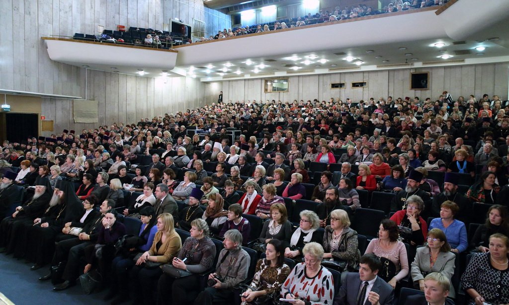 В город Красногорск съехались благочинные церковных округов Московской епархии, члены Епархиального отдела религиозного образования и катехизации, руководители муниципальных отделов образования Московской области, ректоры подмосковных ВУЗов и средних специальных учебных заведений, представители педагогической общественности.