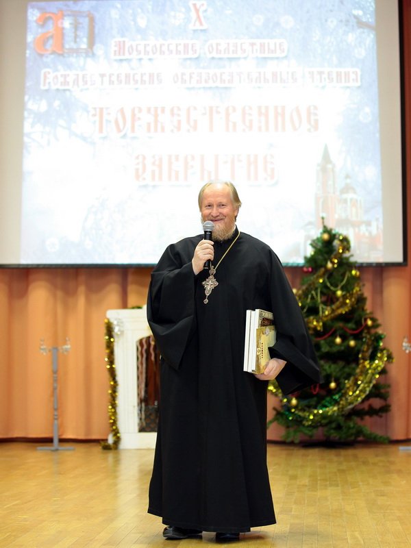 Затем педагогов, школьников и священников пригласили в зал, где началось торжественное закрытие Рождественских образовательных чтений на территории Щелковского района. С приветственным словом к участникам чтений обратились благочинный церквей Щелковского округа протоиерей Андрей Ковальчук и директор