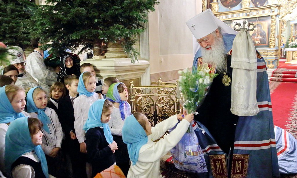 «Возлюбленные братья архипастыри, всечестные отцы, матери игумении, возлюбленные, дорогие братья и сестры! В нашем сознании рисуются образы, связанные с Рождеством Христовым. Сегодня, когда я вошел в этот храм, он мне напомнил Вифлеемскую пещеру, где в тиши, в удалении от мира, который жил своими заботами, волнениями, нуждами, мы начали прославлять пришедшего в мир Христа Спасителя. Я думаю, что в праздник Рождества Христова и священнослужители, и монашествующие, и православные христиане испытывают неописуемую радость и восторг, потому что Господь сподобил их на земле пережить радость общения с Ним. Я сердечно благодарю тебя, возлюбленный и дорогой Владыка Григорий, за твое приветствие, за твои благопожелания. Одно только хочу сказать, что без помощи Божией ничего на земле не совершается и нельзя все заслуги относить к одному человеку, а в частности ко мне, который также, как и все люди, несовершенен, а в свои годы и мало, что может совершить. Мы должны Господа благодарить, что он посылает нам усердных архипастырей и пастырей, которые в жизни своей исполняют то, что заповедал Христос: „Тот, кто хочет идти за Мной, пусть отвергнется себя“ (см.: Мф. 16:24). Конечно, мирянам трудно воспринять это повеление Господа, а вот священнослужителям, монашествующим, которые больше всего воспринимают слова Господа с помощью благодати Христовой, забывая себя, должно отдать себя полностью служению Богу и ближним. Я, можно сказать, живу в новую, вторую для меня эпоху. Первая была исполнена разных трудностей в осуществлении благовестия на нашей земле, а вторая замечательна тем, что Господь дал нам неограниченную свободу для возрождения церковной жизни. Поэтому каждый день ценю и благодарю Бога за себя и за тех, кто со мною, потому что то, что десятилетиями разрушалось, мы стремились и стремимся восстановить. Для нас не самое главное храм построить, а обратить людей к Богу, научить их вере Христовой! Мы все силы прилагаем к тому, чтобы это сделать в первую очередь среди детей.