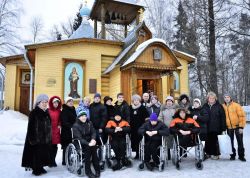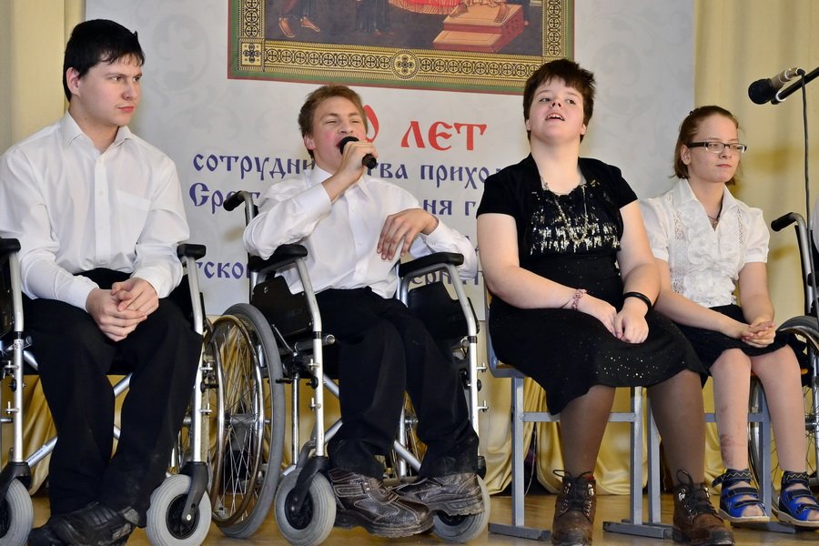 С воспитанниками детского дома-интерната для умственно-отсталых детей и детей-инвалидов «Березка» г. Сергиев Посад приход храма Сретения Господня связывает долгая дружба. Обычно 3–4 раза в год в храм воспитанники детдома и тех из них, кто по достижению совершеннолетия был переведен в другие дома-интернаты Московской области (к сожалению, их распределяют в разные места — это и Куровское, и Климовск, и Люберцы, Клин, Щелково, Егорьевск, Андропов) посещают Сретенский храм. Большинство из гостей — инвалиды-колясочники. Недавно ребята подружились с воспитанниками детдома для слепоглухонемых детей, некоторые из них также стали посещать праздники. Обычно, по прибытии в храм, ребята сначала исповедуются и причащаются, затем следует праздничный концерт, в котором всегда активно участвуют и они сами, общая трапеза и раздача подарков. Ребята всегда прекрасно выступают, задолго до праздника готовятся к нему, разучивая стихи, песни и даже танцы (а ведь танцуют они на инвалидных колясках)! Все это очень трогательно видеть. Клирики и прихожане храма стараются навещать их в детдоме и интернате в Куровском, проводить там беседы, устраивать праздники.