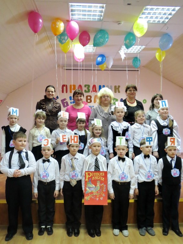 Первоклашки закончили свою первую школьную книгу. Хотя они еще и маленькие, но уже грамотные. А учили их умный, интересный, занимательный Букварь и первый учитель —