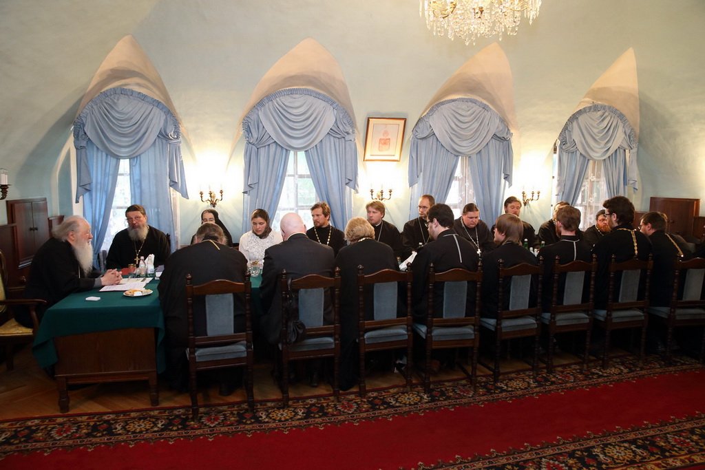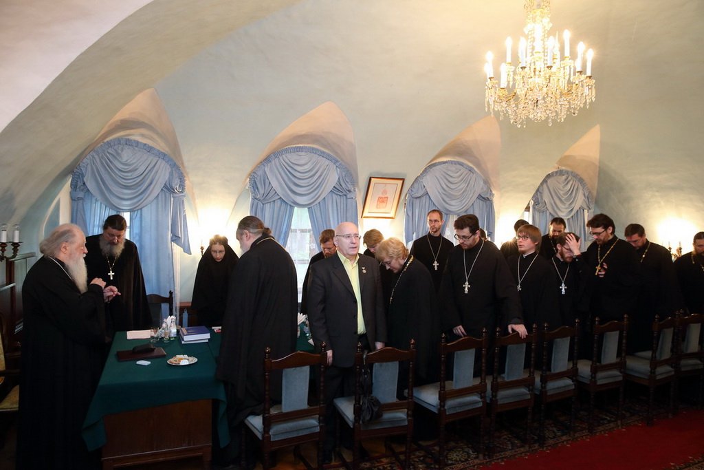 Затем митрополит Ювеналий разделил с членами Редакционного совета трапезу в обители, после чего принял членов редколлегии и провел с ними рабочую встречу по итогам состоявшегося совещания.