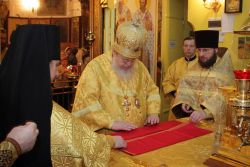 По окончании Божественной литургии епископ Николай, как благочинный Балашихинского церковного округа, представил молящимся прибывшего к месту своего служения нового настоятеля Троицкого храма иеромонаха Лазаря (Беломоина), пожелав ему благословенных успехов в несении данного послушания. В ответном слове отец Лазарь поблагодарил Владыку Николая, выразив сердечную признательность митрополиту Ювеналию за оказанное высокое доверие и благословение, преподанное на дальнейшие труды.