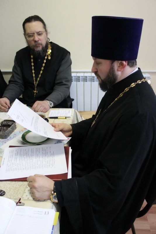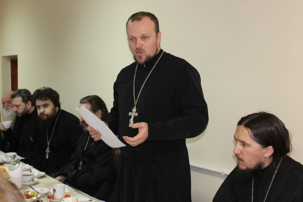 В рамках собрания духовенства благочиния, состоялся пастырский семинар на тему: «Современная практика Таинства Исповеди. Практика духовничества». На семинаре были заслушены тематические доклады врача-психиатра, заведующего диспансерным отделением Московской областной психиатрической больницы № 8 г. Орехово-Зуево Н. Ф. Усцева «О психиатрических заболеваниях и различии между беснованием и психическим расстройством», настоятеля Крестовоздвиженского храма г. Орехово-Зуево священника Михаила Таганова «Современная практика духовничества» и ответственного в благочинии по взаимодействию и связям со СМИ, настоятеля Покровского храма с. Старый Покров священника Антония Рыжакова «Таинство Исповеди. Современная практика на приходах».