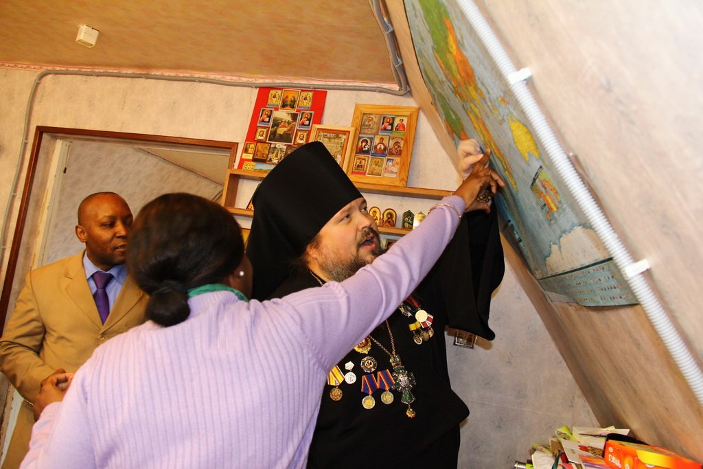Начавшиеся в этом году отношения с учащимися французского лицея при посольствах в Москве вылилось в неожиданное продолжение. В пятницу 28 марта Детский корпус «Никита», школу мастерства «Шмель» и воскресную школу храма посетила делегация с африканского континента — жены послов стран