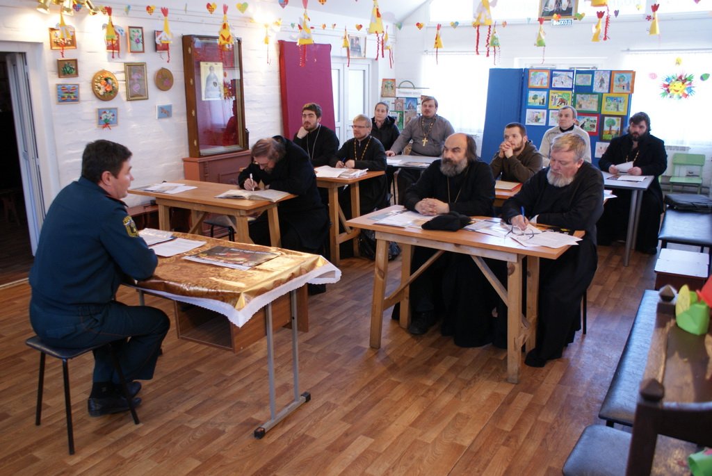 10 апреля в культурно-просветительном центре имени святого праведного Иоанна Кронштадтского при Иоанно-Богословском храме г. Ликино-Дулево прошла встреча настоятелей и ответственных за противопожарную безопасность храмов Ликино-Дулевского благочиния с сотрудником отдела надзорной деятельности по Орехово-Зуевскому району главного управления МЧС России по Московской области майором С. А. Юрасовым. Сергей Анатольевич рассказал о новых нормативных документах по мерам противопожарной безопасности, о действиях персонала храмов в черезвычайных ситуациях, о мерах, позволяющих снизить риск возгораний в весенне-летний период, раздал наглядные пособия.
