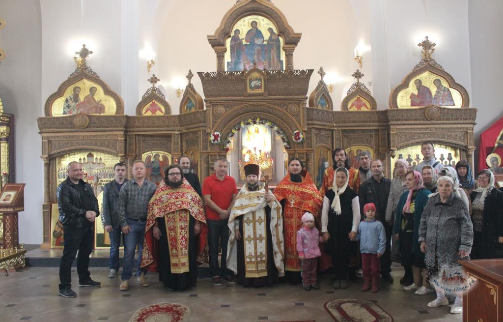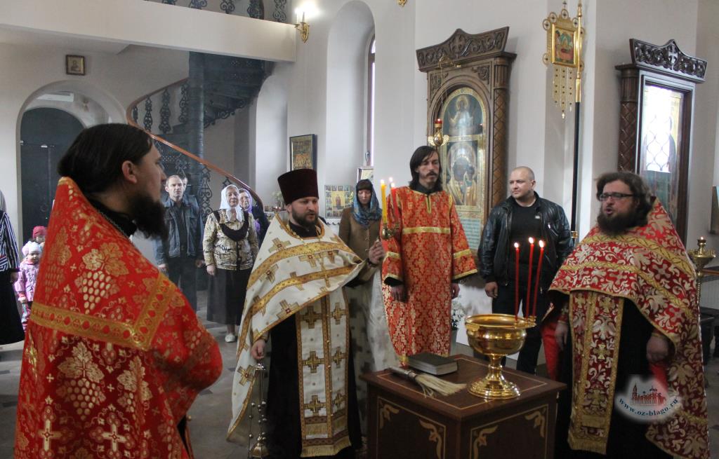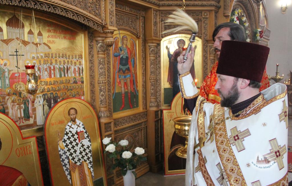 7 мая в храме Новомученников и исповедников Орехово-Зуевских г. Орехово-Зуево благочинный церквей Орехово-Зуевского округа протоиерей Андрей Коробков в сослужении настоятеля Преображенского храма с. Малая Дубна священника Ярослава Шелеста и клирика означенного храма священника Петра Тури освятил первый ряд икон для иконостаса в нижнем пределе в честь иконы Божией Матери «Неупиваемая чаша».