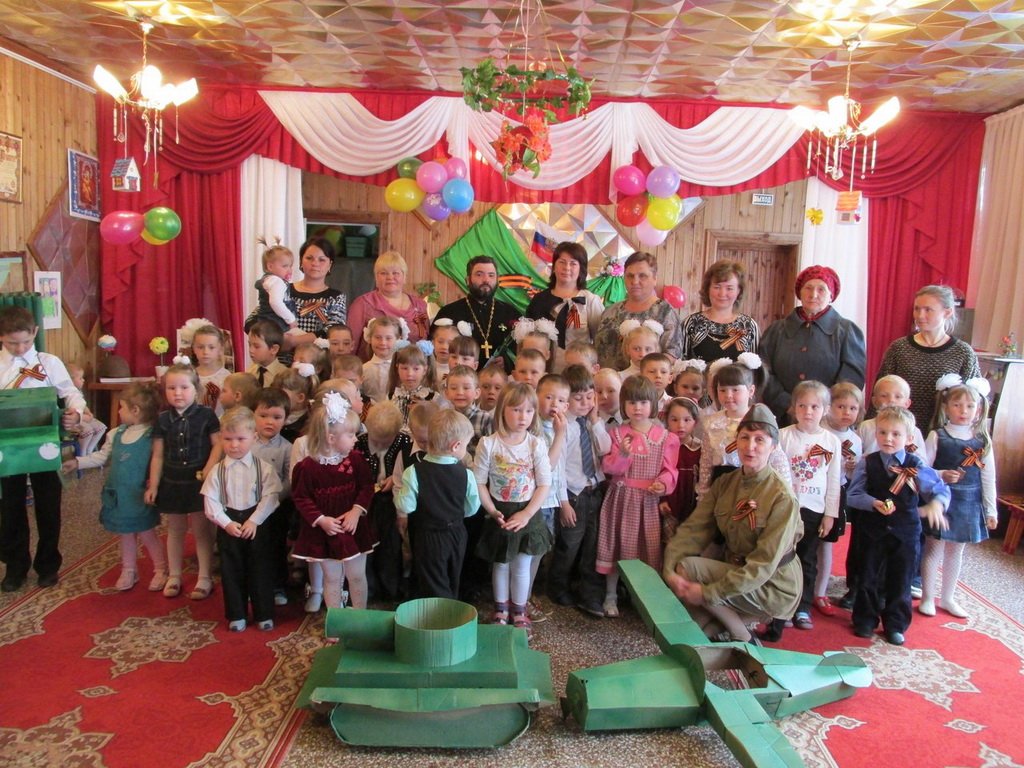 7 мая в детском саду № 49 «Березка» деревни Савинская прошел праздник, посвященный Дню Победы. На празднике присутствовали настоятель храма Покрова села Яковлево священник Михаил Лытьков, родственники участников Великой Отечественной войны, труженик тыла Л. Н. Долматова, представители администрации, родители. Отец Михаил рассказал детям о раскопках на Валдае, которые вот уже несколько лет проводит поисковый отряд «Спектр». Он преподнёс в музей детского сада фронтовую каску советского солдата.