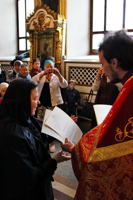 По окончании богослужения отец Владислав поздравил воспитанников отделения с окончанием обучения и вручил курсантам свидетельства о присвоении слушателям квалификации «Приходской