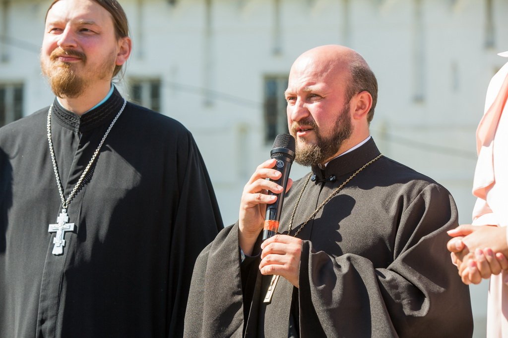 После молебна на площади у ворот Новодевичьего монастыря паломников провожали благотворители: президент благотворительного фонда «Спешите делать добро!», актриса и телеведущая