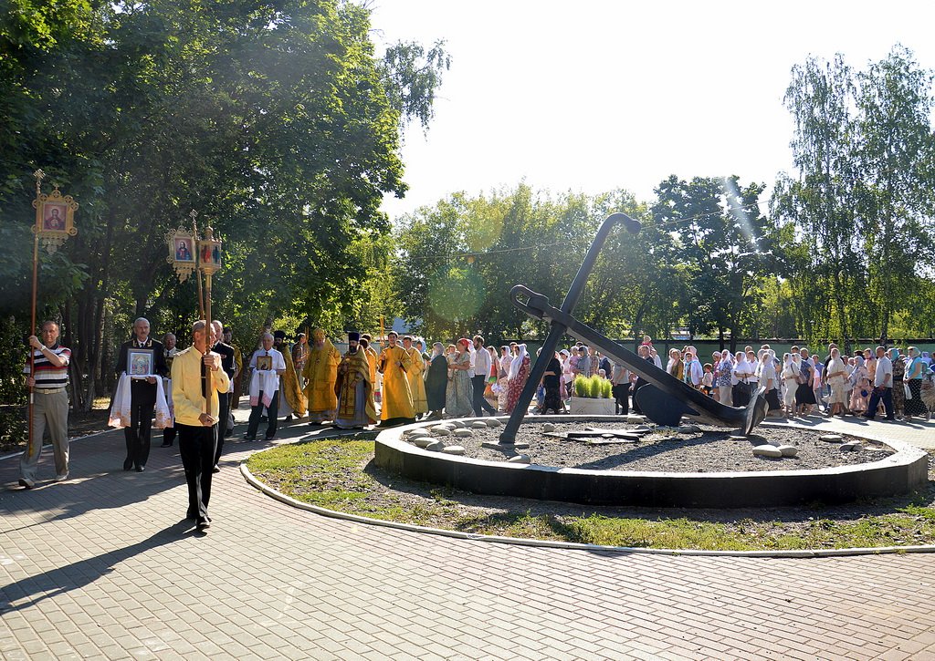 По завершении Божественной литургии все участники богослужения крестным ходом направились к поклонному кресту. Епископ Николай совершил чин освящения поклонного креста, окропил святой водой адмиралтейский якорь и всех прихожан. Владыка передал жителям Купавны и военным морякам — как находящимся в строю, так и ветеранам — архипастырское благословение митрополита Крутицкого и Коломенского Ювеналия.