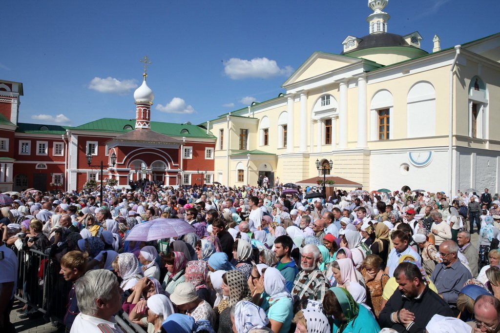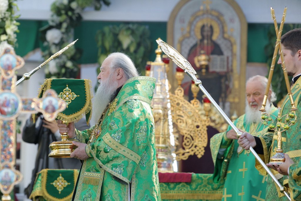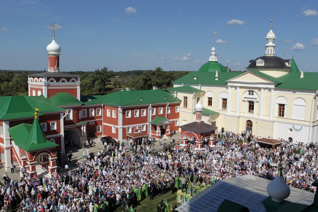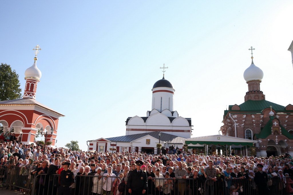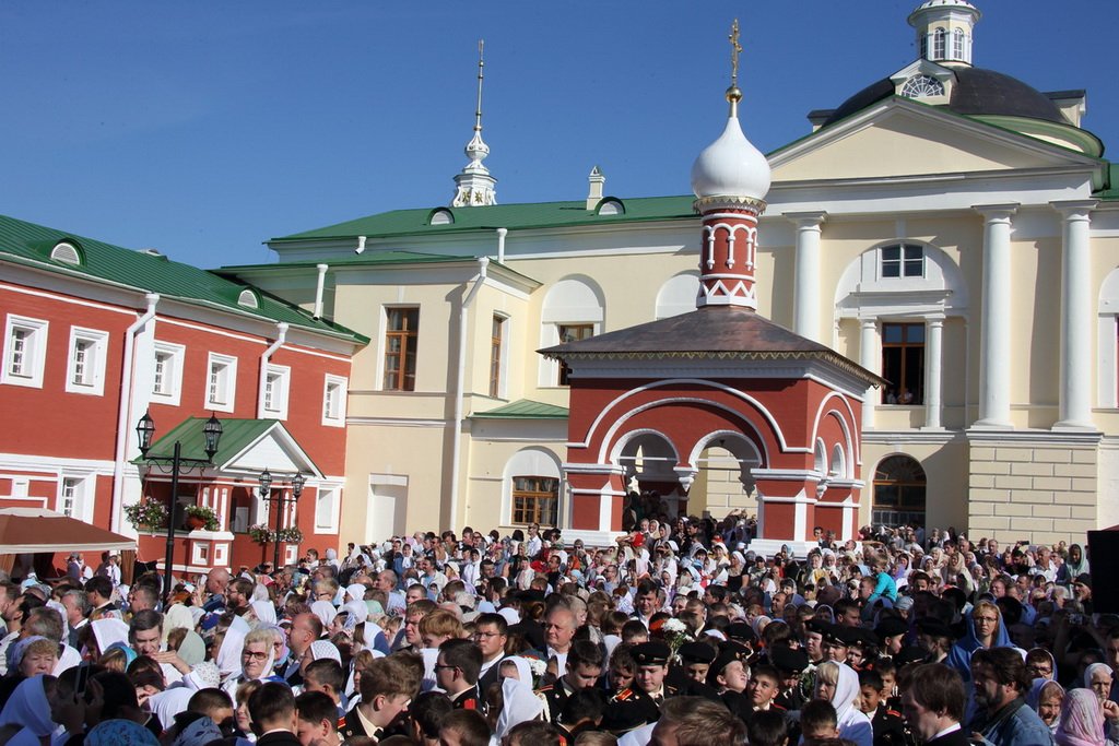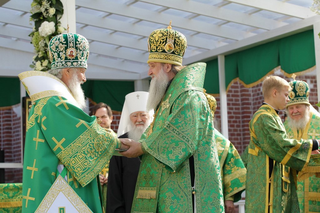У святых врат монастыря Святейшего Патриарха встречали митрополит Крутицкий и Коломенский Ювеналий, председатель Московской областной думы