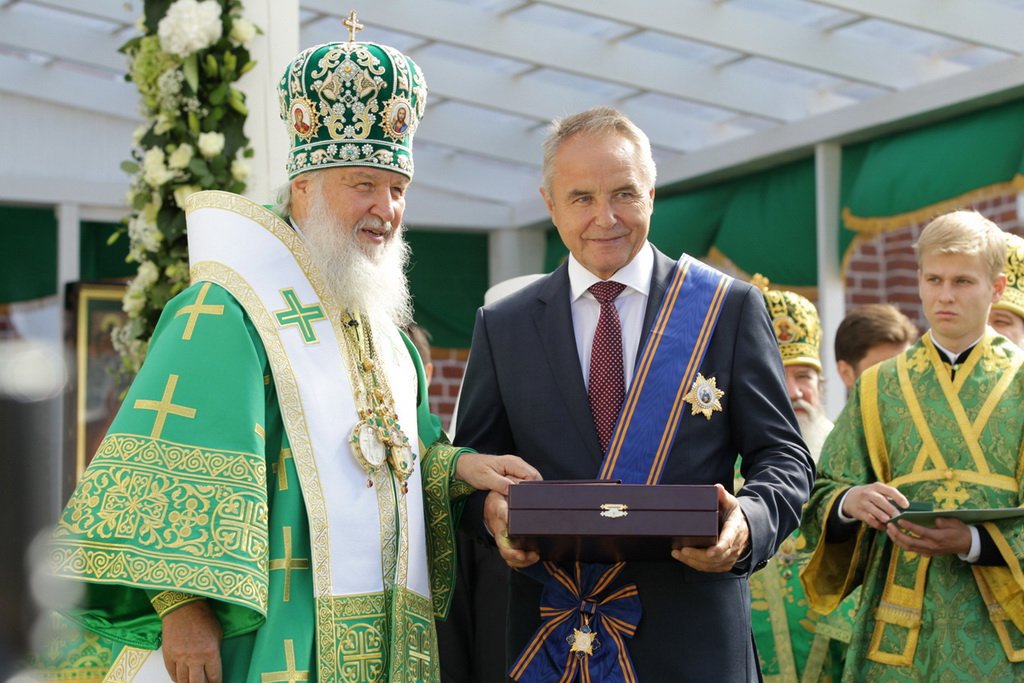 Ваше Святейшество! Как многие святыни России этот монастырь пережил свои трагические страницы истории — мученическую кончину ее насельников и ее разорение, начиная с 1917 г., осквернение и разрушение. И нашелся один человек Божий, именно так хочется о нем сказать, — глава Дмитровского района Валерий Васильевич Гаврилов, который с сильной верой в сердце, дерзновением и любовью к Святой Церкви в 2007 г. взялся за возрождение этой обители. И по милости Божией сделано то, что Вы сегодня здесь видите. И очень хочется сказать также, что преосвященный епископ Роман, который является благочинным монастырей Московской епархии, духовно вдохновлял этот созидательный процесс.