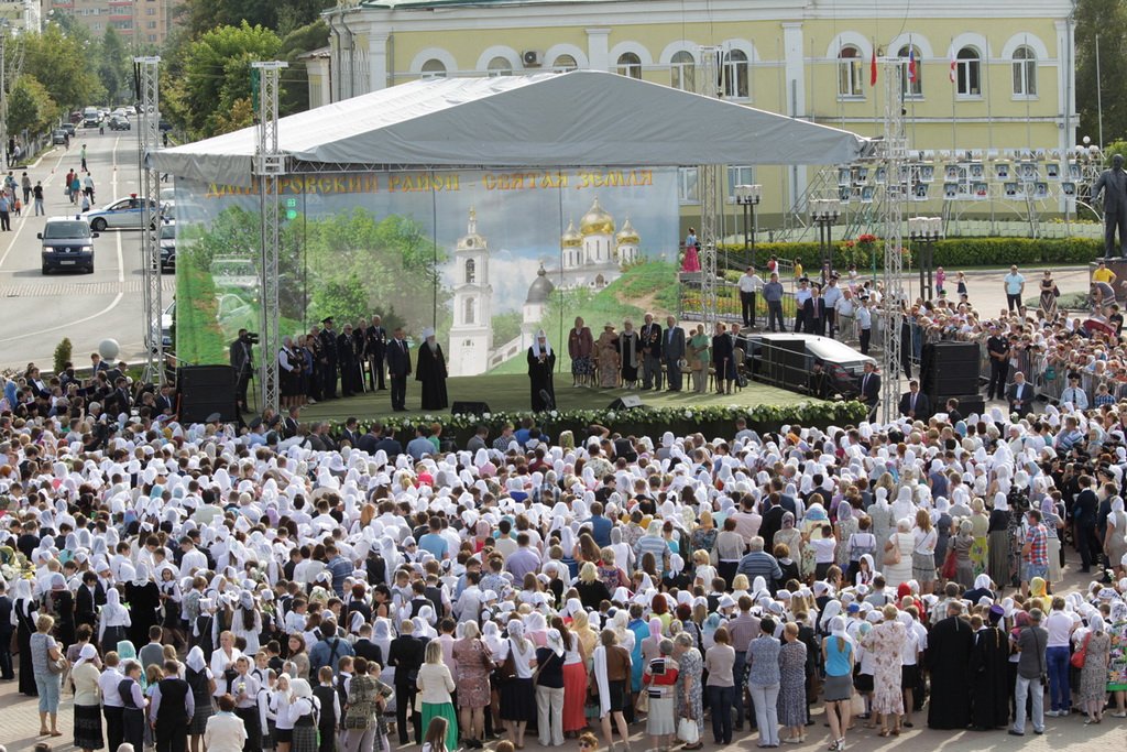 Ну, а всем жителям Дмитрова, Дмитровского района — благословение Божие. Душевный мир и покой пусть пребывают в ваших сердцах, и помощь Божия да сопутствует всем вашим добрым делам и начинаниям».
