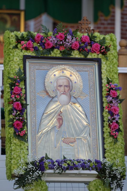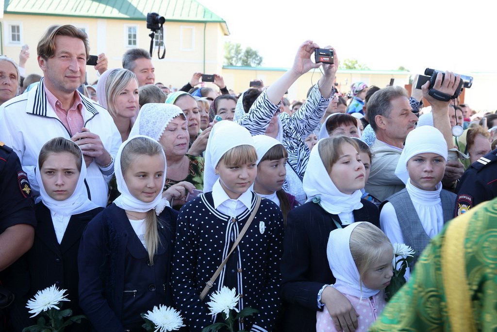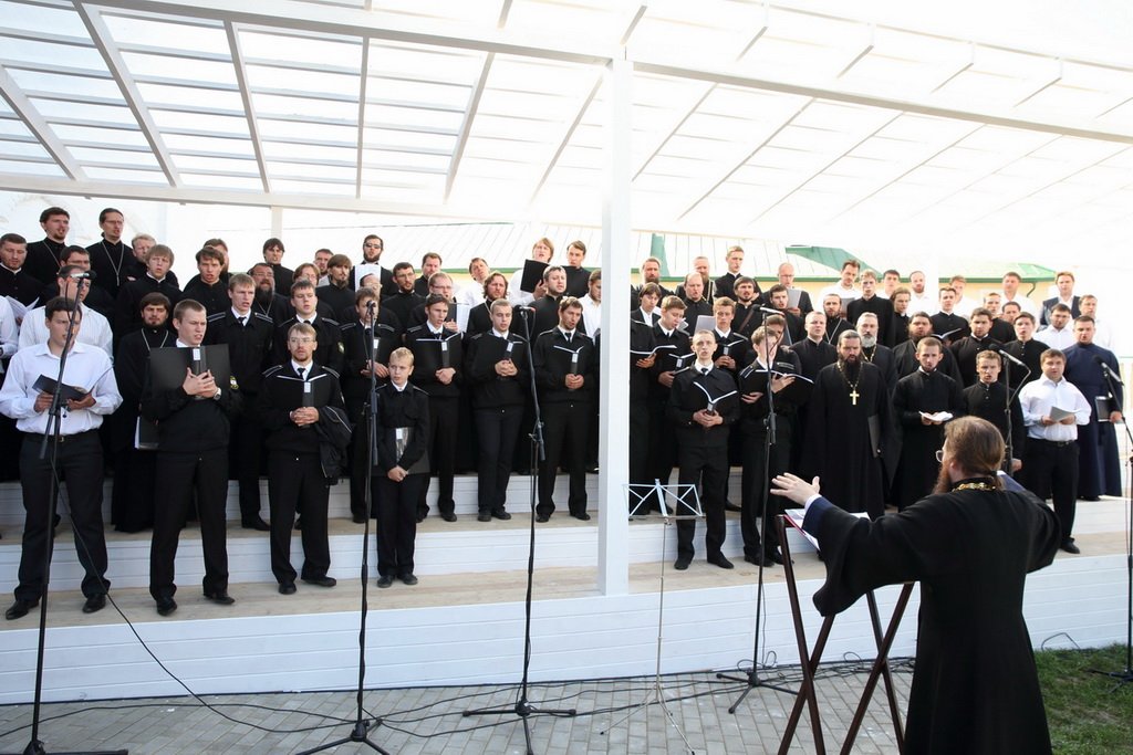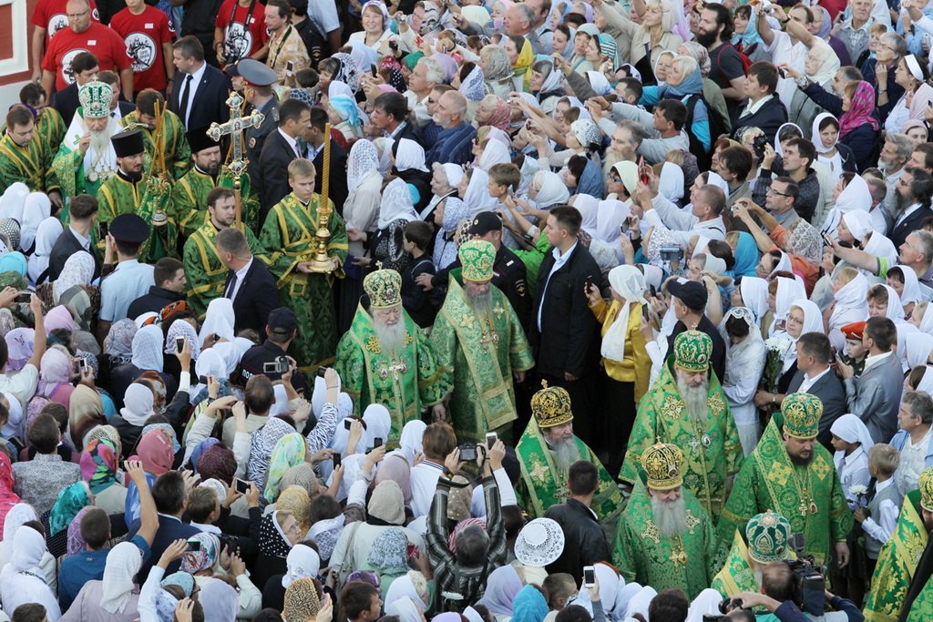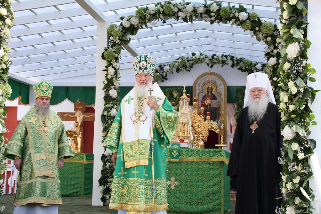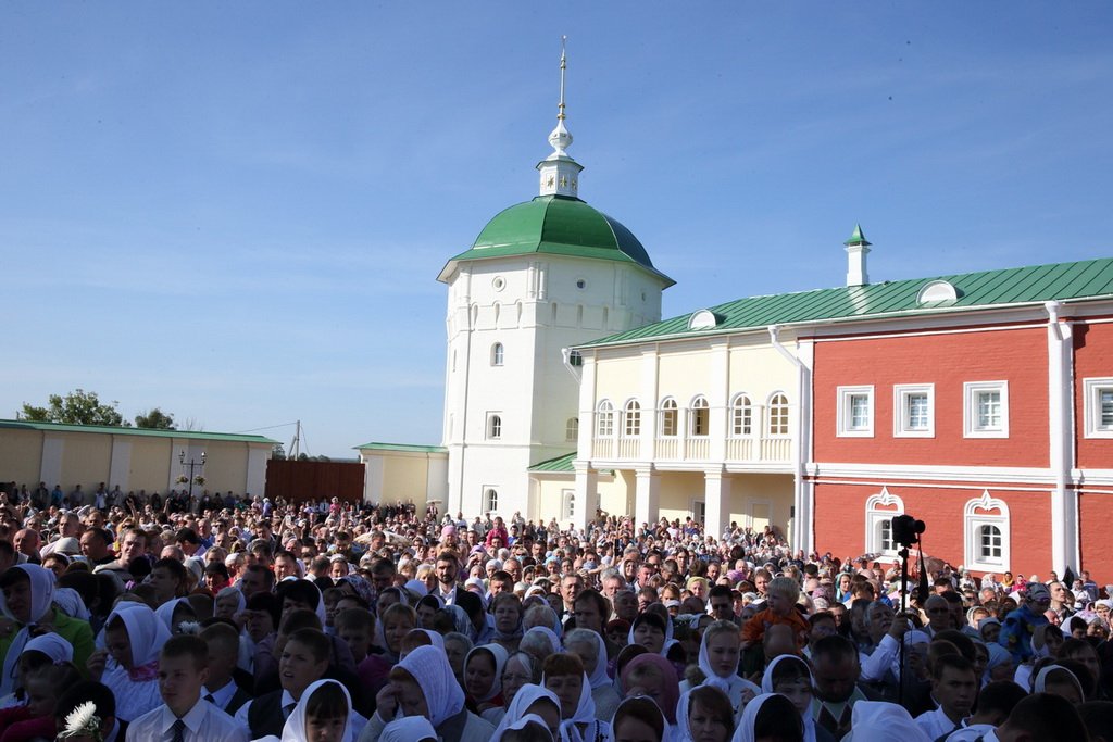 Спасибо Вам за то, что Вы предприняли Первосвятительский труд паломничества сюда, возглавления этого богослужения. Спасибо за благословение всем нам прибыть сюда, и множеству верующих, которые с радостью сегодня присутствовали за этим богослужением. Для нас останется в памяти и в истории Ваш сегодняшний Первосвятительский визит. И мы просим от нас, монашествующих, принять, Ваше Святейшество, эти святые панагии и крест с тем, чтобы Вы, когда будете совершать свое патриаршее богослужение, поминали нас недостойных в своих святых молитвах. Пусть Господь предстательством наших святых, в земле Российской просиявших, хранит Вас на многая и благословенная лета!»