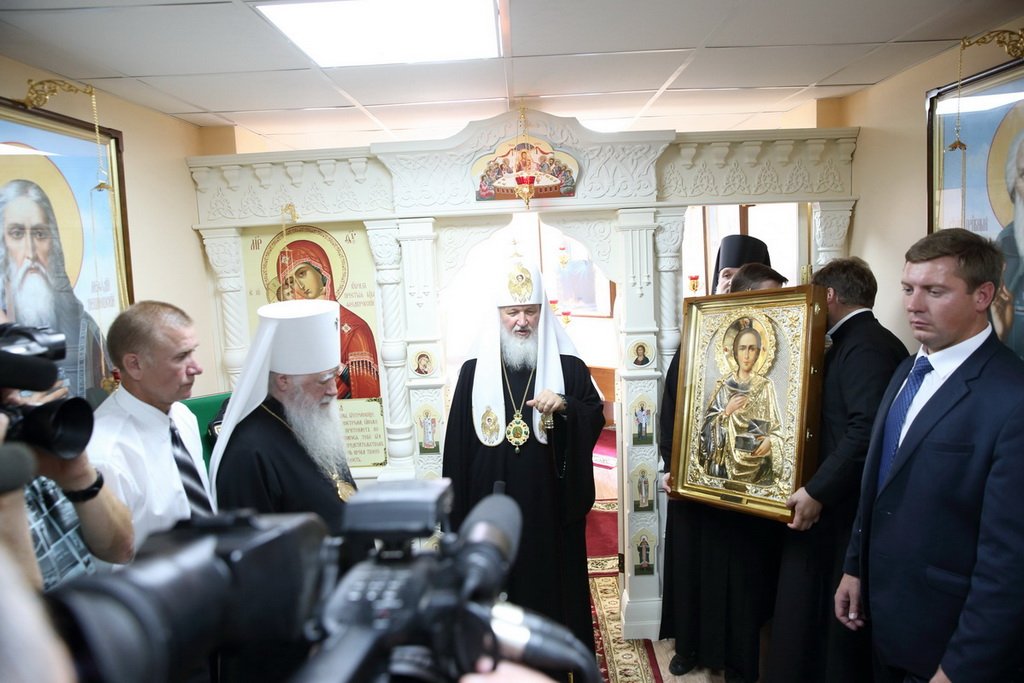 В дар храму Святейший Владыка передал список чудотворной Киккской иконы Божией Матери, пребывающей в Киккском монастыре на Кипре. Верующим Святейший Патриарх Кирилл благословил раздать иконки преподобного Сергия Радонежского с Патриаршим благословением.