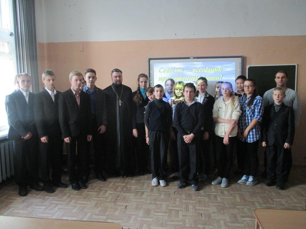 28 ноября в школе поселка Радовицкий настоятелем храма иконы Божией Матери «Нечаянная Радость» священником Алексием Цыганковым был проведен открытый урок на тему «Совесть — всеобщий нравственный закон». На занятии присутствовали ученики 6–11 классов, педагоги школы и сотрудники отдела по работе с молодежью.