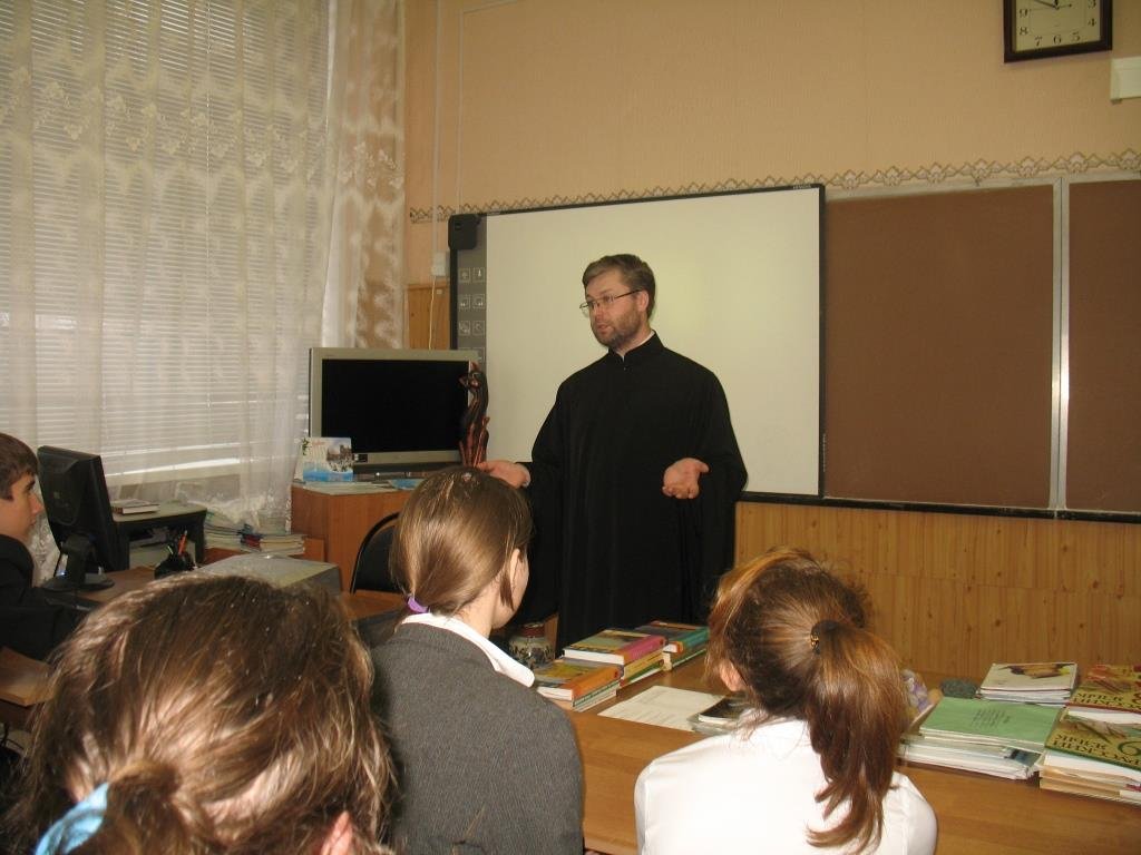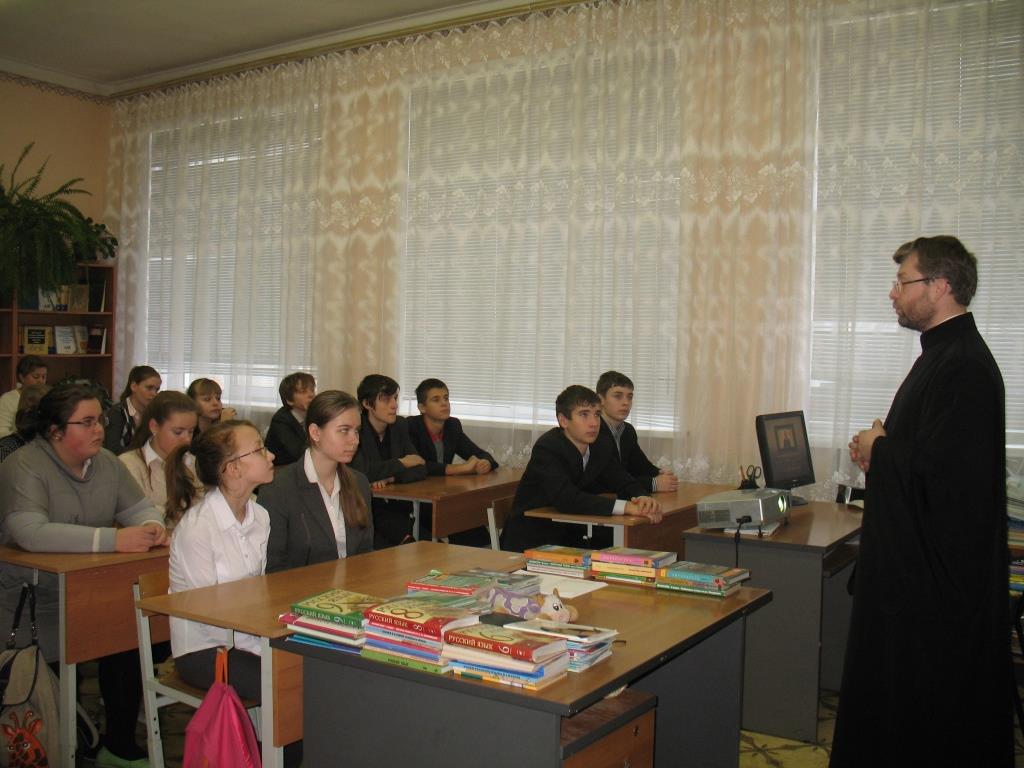 15 декабря клирик Никольского храма г. Шатуры диакон Александр Боярских провел беседу, посвященную жизни преподобного Сергия Радонежского, с учащимися старших классов средней школы № 2 г. Шатуры.
